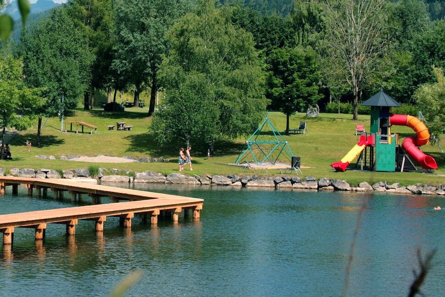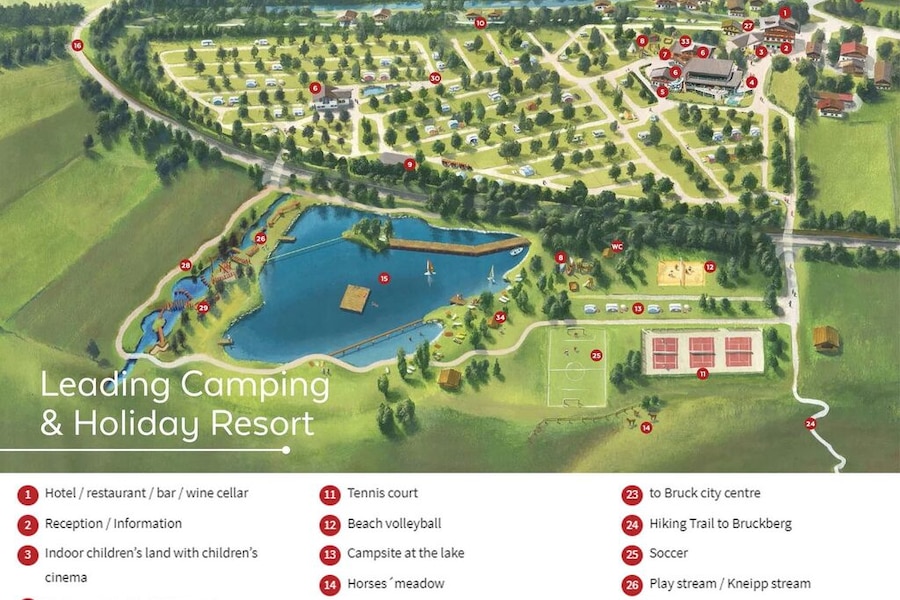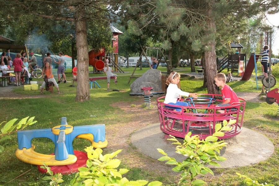 Mooie ligging, loopt wel een doorgaande weg achter de camping, je hoort het, maar veel last heb je er niet van. Mooi meer om te recreëren , en zwembad gelijk bij aankomst voor de hele week betaald.