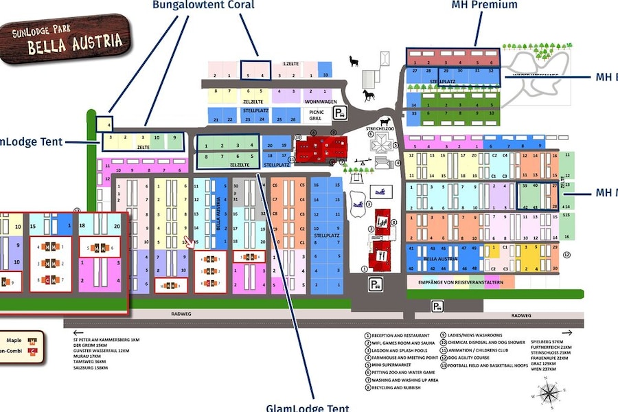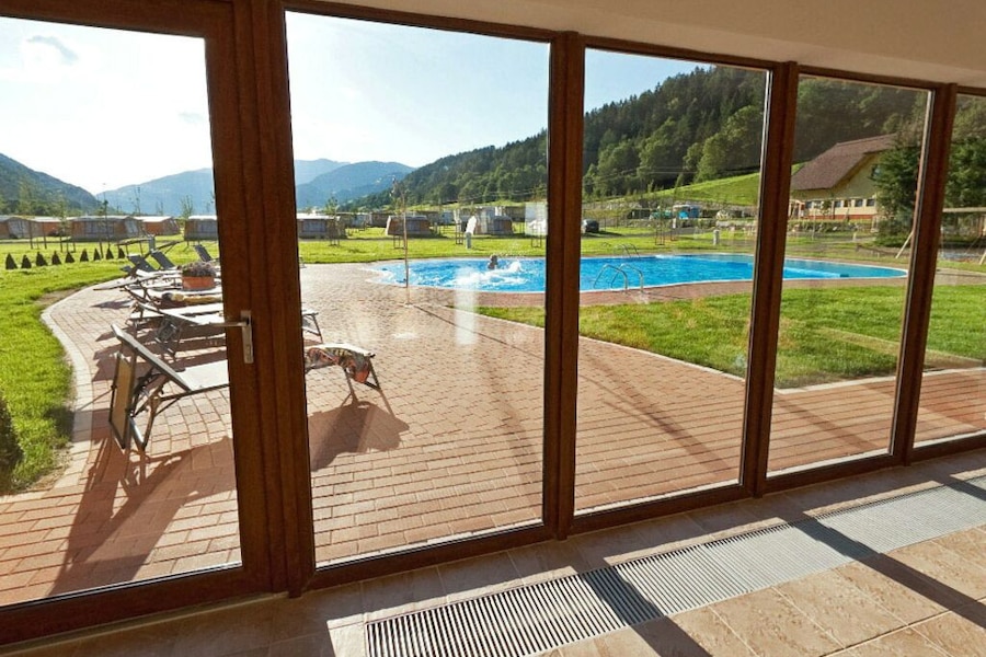At this campsite in Austria you will feel completely content. Did you just come back from a brisk walk in the mountains? Then visit the campsite's wellness centre and relax your muscles in the Finnish sauna or infrared sauna. And then enjoy the sun on one of the loungers. Or have a cool beer on the patio. The kids can get an ice cream from the ice cream parlour. Then head down to the petting zoo or the playground and everyone will be happy. You can end the busy day with a real Austrian schnitzel in the restaurant.A holiday with your dog in a SunLodge