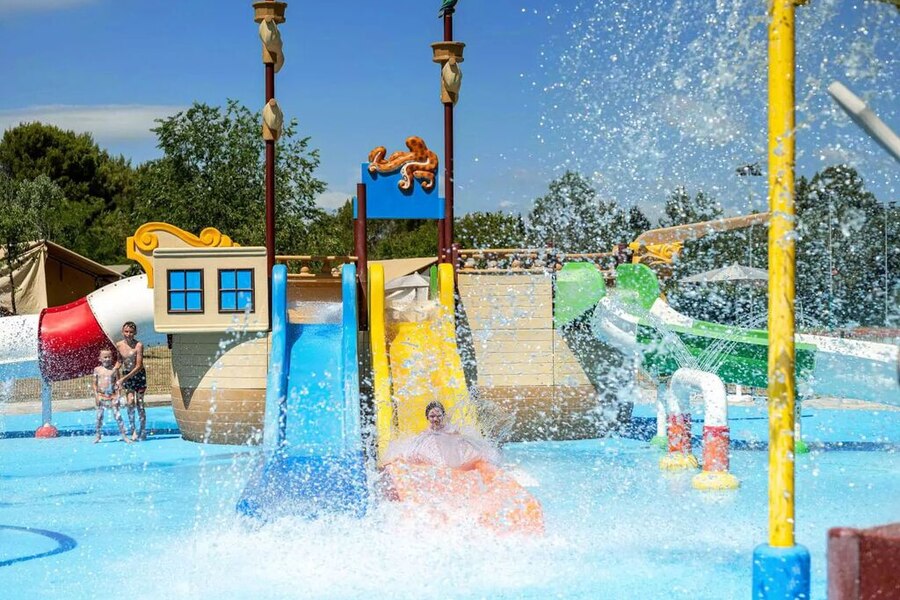 Viel Schatten, bei den Stellplätzen und Mobilhomes, gute Restaurants und Supermarkt im Gelände, Aktivitäten für Kinder wie Klettern oder Trampolin kosten extra, in der nähe der Sportsbar Abends relativ laut, Poolbereiche eher überfüllt,
