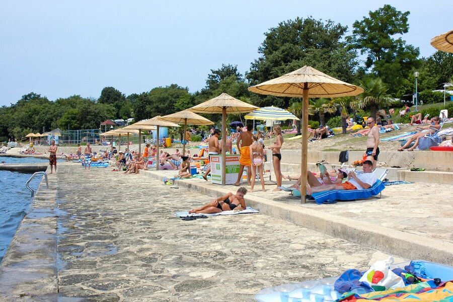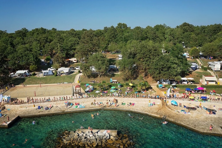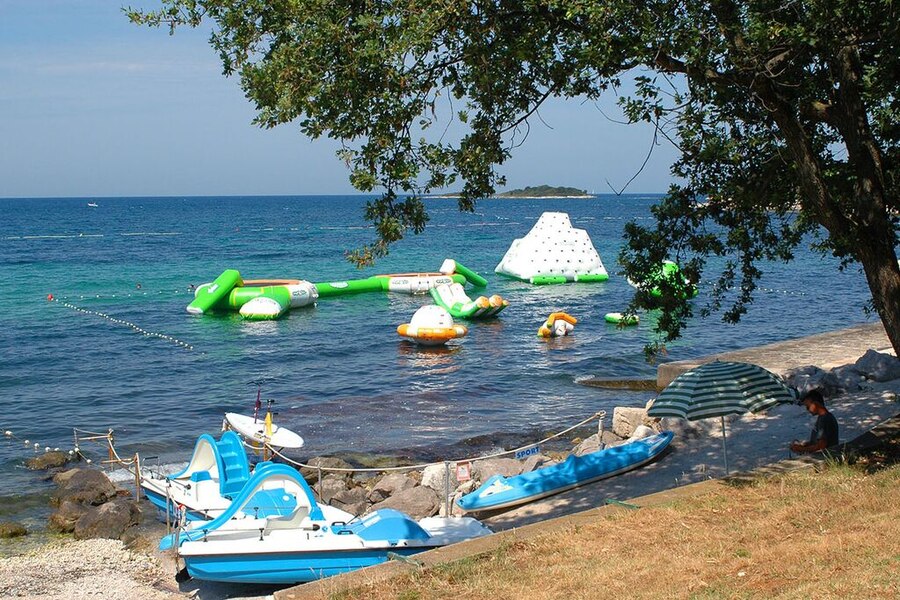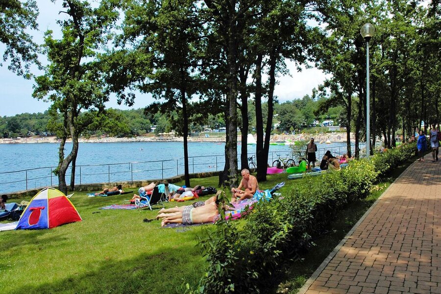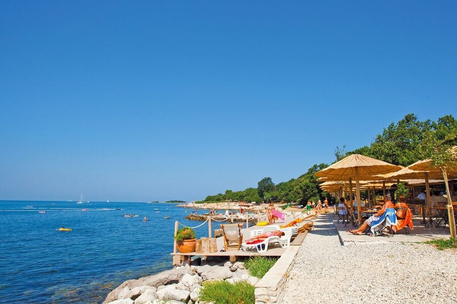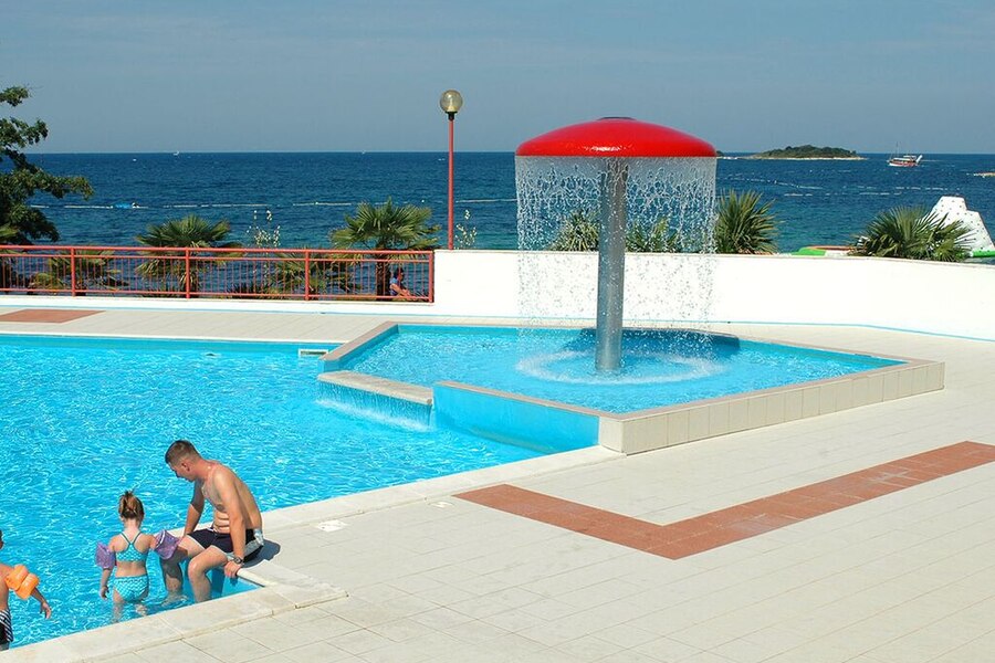 The large Bijela Uvala family campsite is less than five kilometres from the centre of the old town of Poreč. You’ll be spending your holiday here on the Croatian coast on the Istrian peninsula. The campsite is located in a large forest right on the beach, and you’ll be camping among typical mediterranean vegetation, pleasantly in the shade. You can sunbathe on specially constructed ledges on the beach. You can even use the campsite’s free wifi on the beach.Swimming complex for young and old