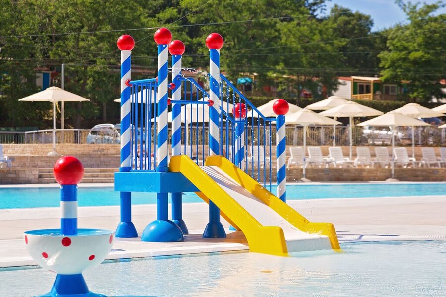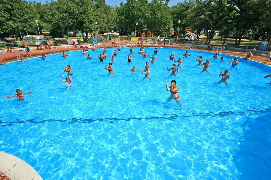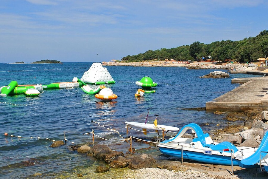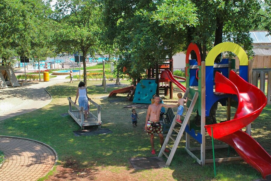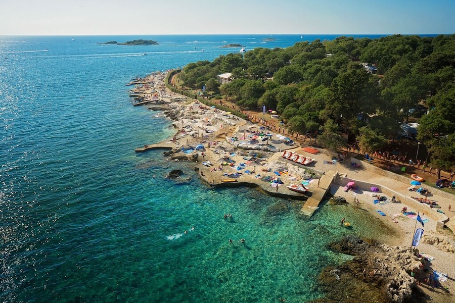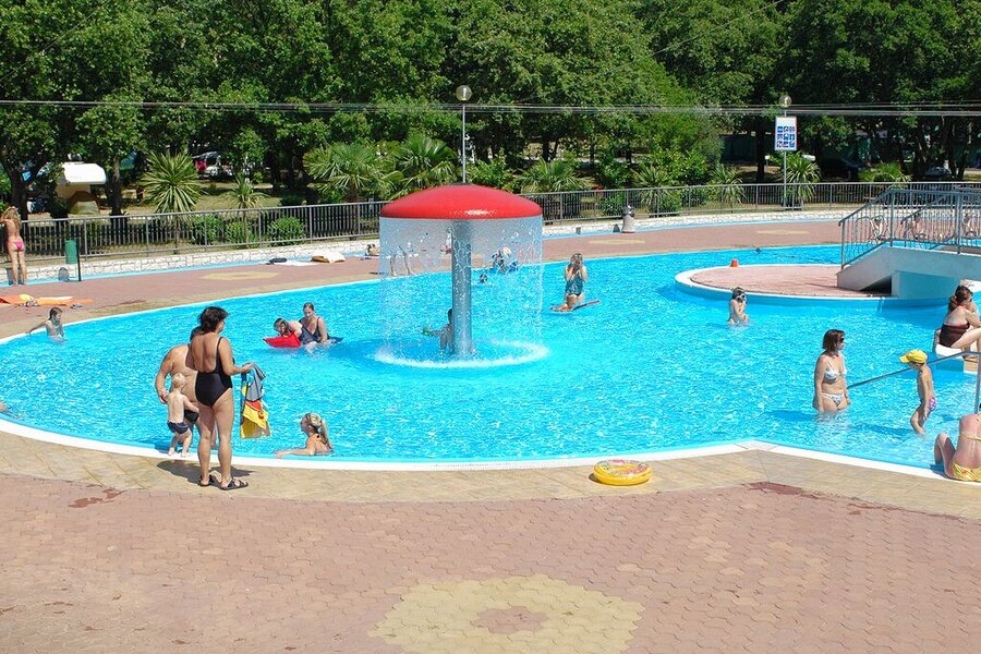 The large Bijela Uvala family campsite is less than five kilometres from the centre of the old town of Poreč. You’ll be spending your holiday here on the Croatian coast on the Istrian peninsula. The campsite is located in a large forest right on the beach, and you’ll be camping among typical mediterranean vegetation, pleasantly in the shade. You can sunbathe on specially constructed ledges on the beach. You can even use the campsite’s free wifi on the beach.Swimming complex for young and old