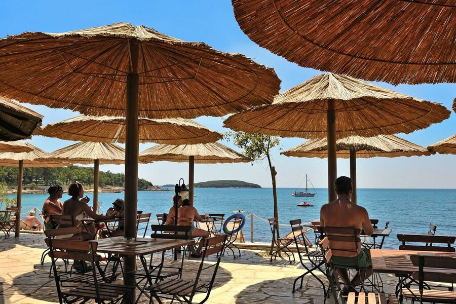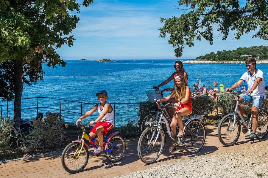 Active people take note! You can play tennis, beach volleyball and even go horse riding at Bijela Uvala campsite. The children will certainly enjoy the playgrounds and minigolf course. But this is also a great campsite for those who just want to laze around. Go and lie on the beach or take a dip in the sea with the children. And the terrace looks inviting, with all those parasols. The campsite has several restaurants; today you can eat pizza, tomorrow some Istrian cuisine.Old buildings and an aquapark in Poreč