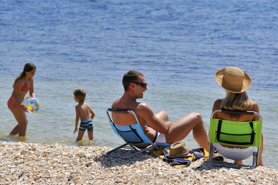 Relax in the swimming pool while gazing out over the Adriatic? That’s possible at this campsite on the Croatian coast. Enjoy your holiday in the shade of a forest and right on the beach. You can enjoy wonderful sunbathing and swimming in the sea at Bijela Uvala campsite. But sports fans can also do their own thing at this luxurious campsite. Horse riding, tennis, beach volleyball; it’s all possible, and meanwhile you can enjoy the sea views.Sunbathing on the beach