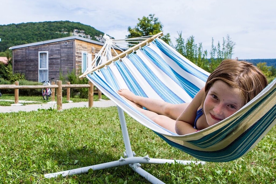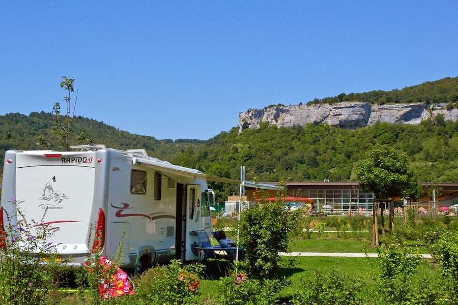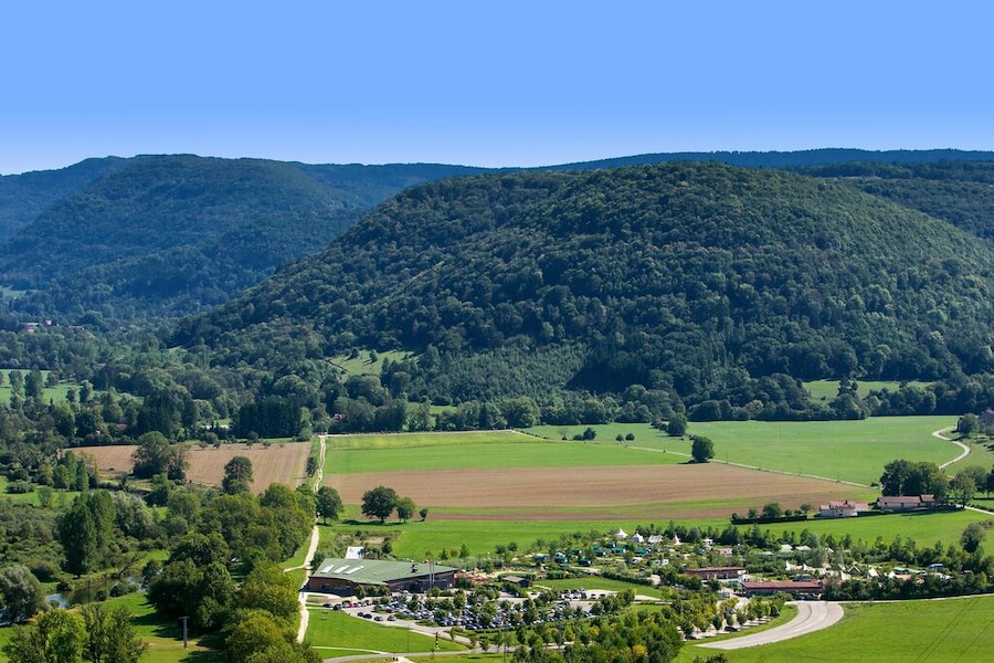 Camping Ecologique La Roche d'Ully is located in the east of France. You’ll be holidaying in the mountainous Jura, not far from Switzerland. The campsite is beautifully situated in the countryside, right next to the lovely river Loue. And with a view of a majestic rocky ledge: the Roche d'Ully.The campsite itself is also very green, both literally and figuratively. Of course we are talking about the many trees, shrubs and lawns. But did you know that this campsite has an eco-label because of its sustainable approach? There is an organic vegetable garden and the campsite is located in a recognised bird sanctuary.