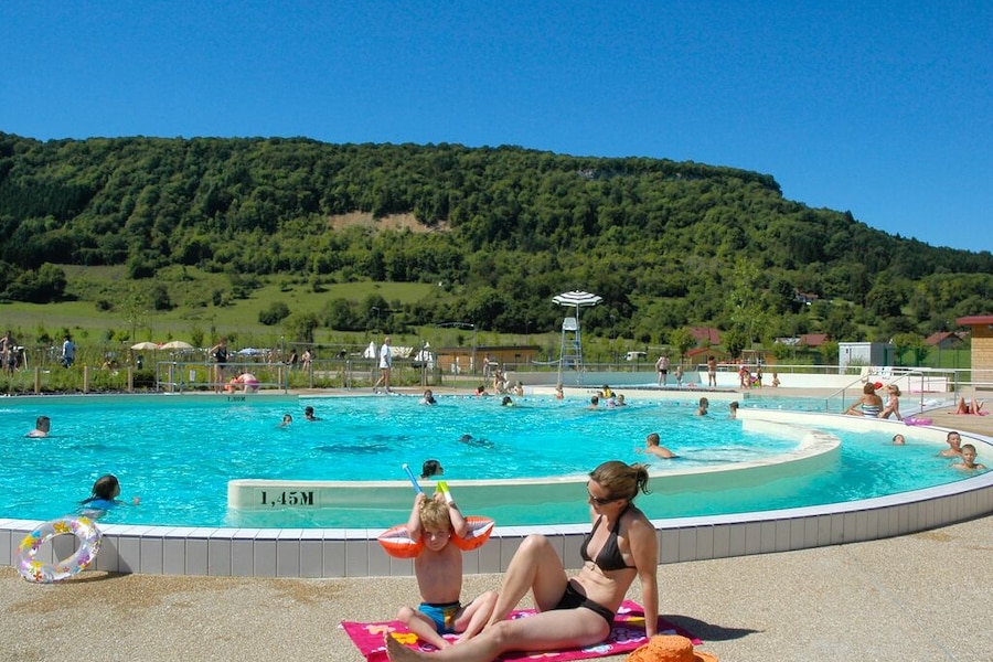 An outdoor swimming pool with rapids, entertainment for the whole family and a lovely restaurant. What more could you wish for? You'll find all this and more at campsite Ecologique La Roche d'Ully, located in the Jura. This green campsite allows for an amazing holiday in one of the luxury mobile homes, chalets or lodge tents. The charming village of Ornans is only a fifteen-minute walk from the site.A view of a rocky ledge
