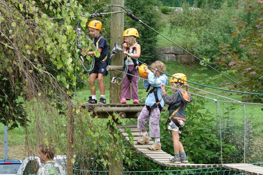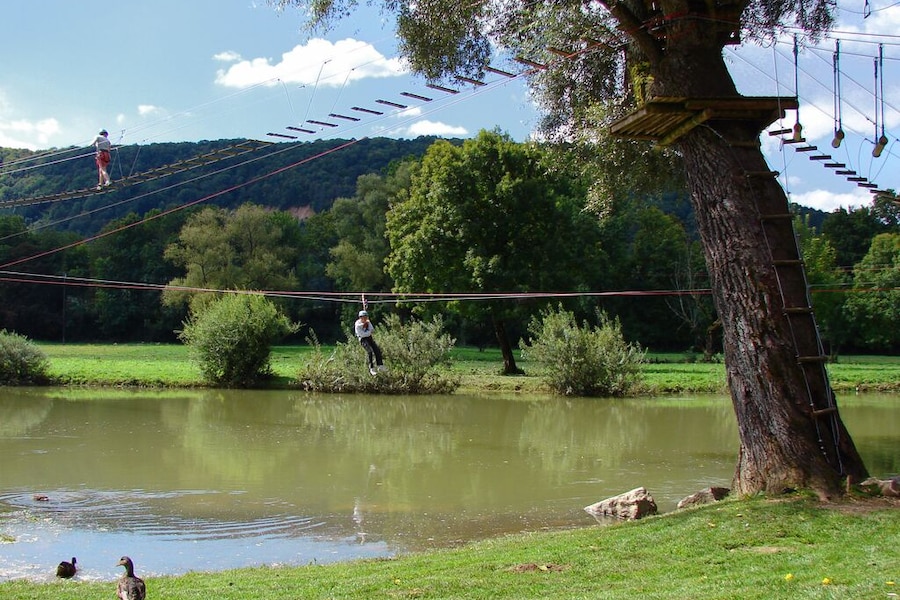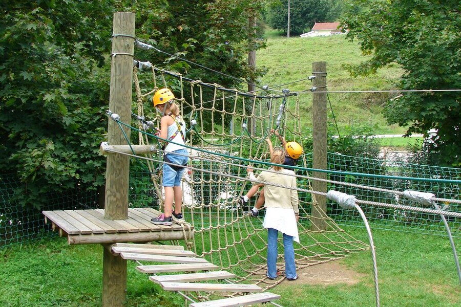 Camping Ecologique La Roche d'Ully has a nice range of special tents and chalets. For example, there is a magical wooden house for rent that children will really love. You can also stay in one of the comfortable glamping tents or chalets. The Lodge Venezia is the crown jewel; it even boasts a freestanding bath. If you brought your own motorhome, caravan or tent, you can camp on nice grass pitches with shade and privacy.Climbing, clambering and canoeing