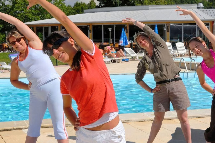 Water lovers will have a great time at Camping Yelloh! Village Fayolan. The campsite boasts an outdoor pool, a heated indoor pool, and a paddling pool for little ones. Kids are sure to enjoy the thrilling water slide. Additionally, the campsite is located by a lake with a sandy beach and crystal-clear water, perfect for swimming and relaxing. If you enjoy water sports, you’ll be glad to know that windsurfing is allowed here.Exciting activities for all ages
