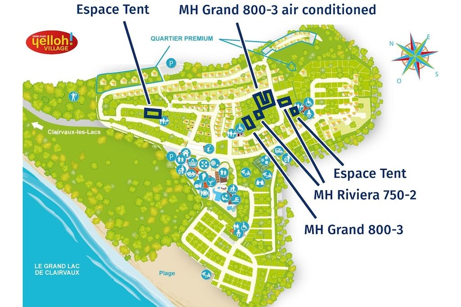 A wonderful holiday filled with water fun and natural beauty awaits you at Camping Yelloh! Village Fayolan. With a heated swimming pool, a sandy beach by Le Grand Lac, and a variety of outdoor activities, this campsite is perfect for an active holiday. Thanks to the scenic hiking and cycling routes, this destination is also ideal for nature enthusiasts.Plenty of swimming fun for everyone