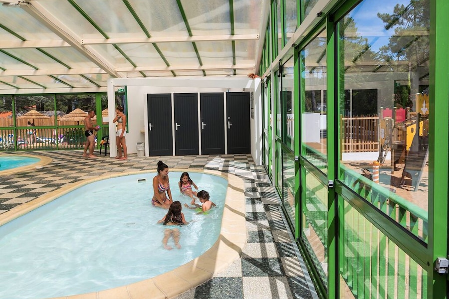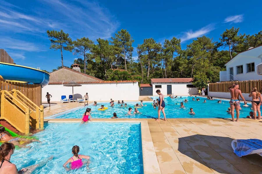 At the heart of Flower Camping Les Dunes you will find a large heated outdoor swimming pool, surrounded by sun loungers and parasols. While the children have fun in the paddling pool or on the slides, you can sit back, relax or take a refreshing dip yourself. Prefer the sea? A forest path leads you straight to Les Conches beach (1 km), a lovely spot for sunbathing, swimming or taking surf lessons.