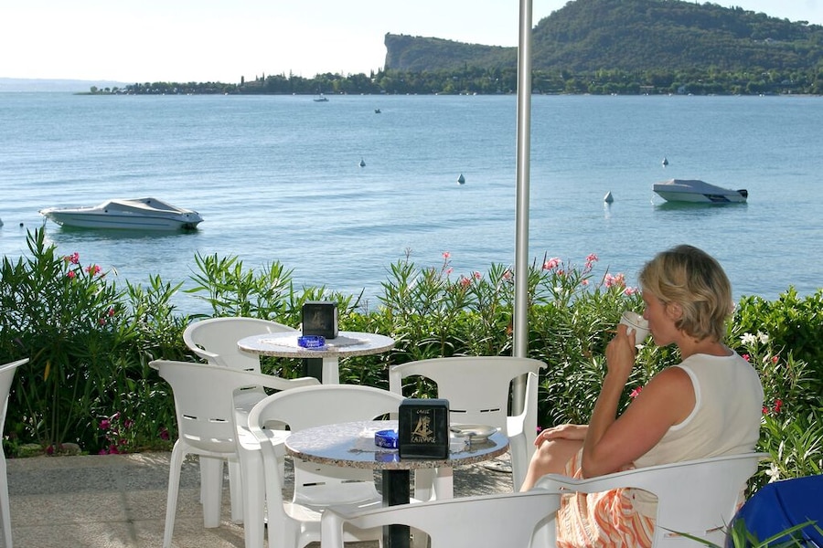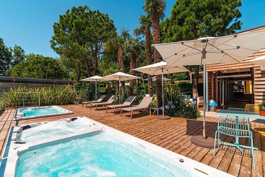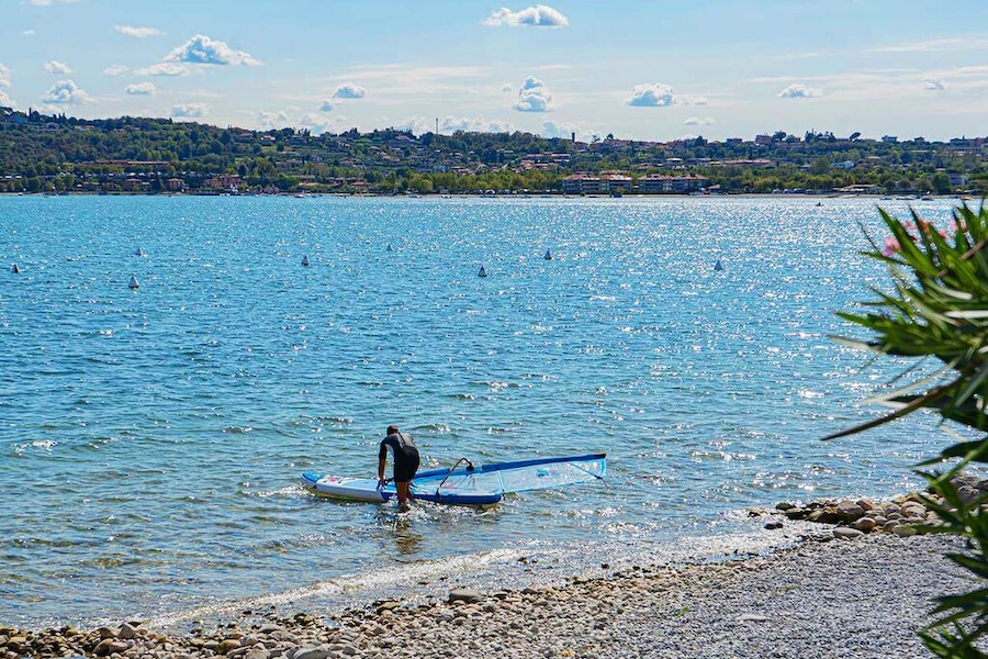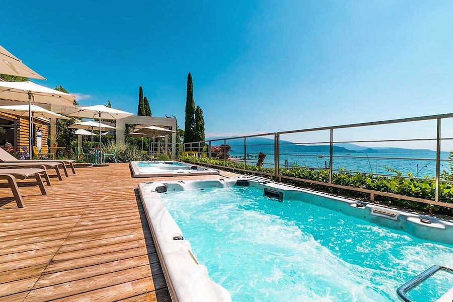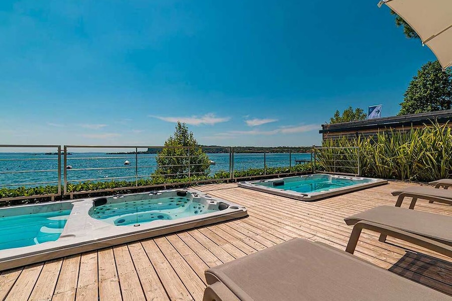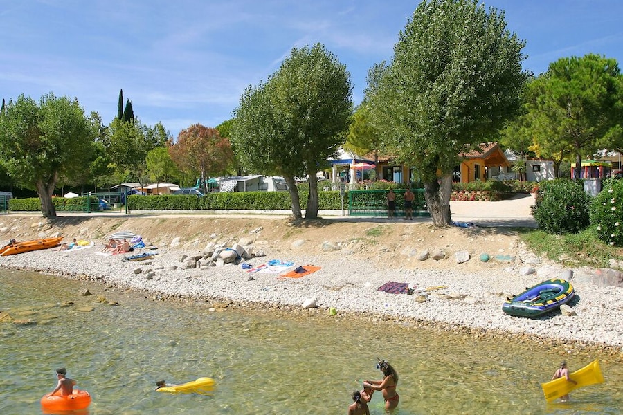 Even though the campsite does not have a swimming pool, the jacuzzis and its location on the shore of the lake mean there is no shortage of water fun. You can walk from the campsite to Lake Garda along a lovely pebble beach, so be sure to pack your beach shoes! There is a strip of grass where they young ones can play and where you can enjoy the sunshine. There are sun loungers and parasols on the raised sun deck.Pleasure on and in this beautiful lake