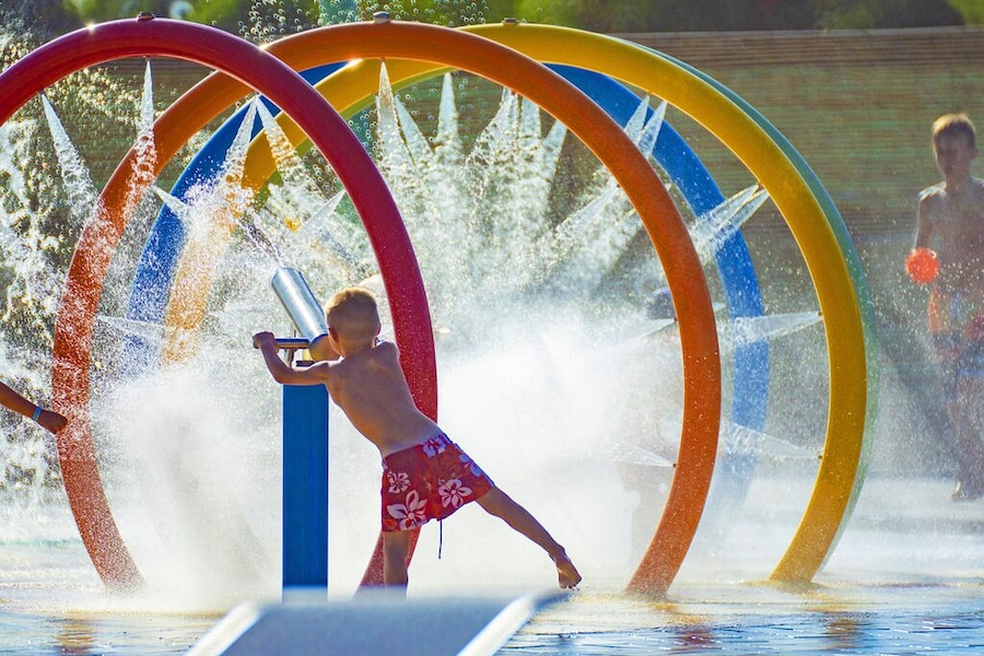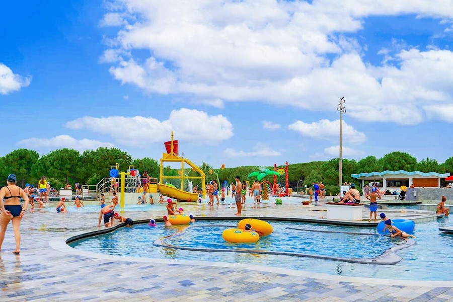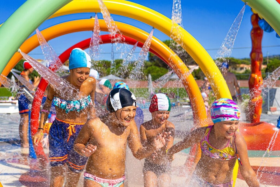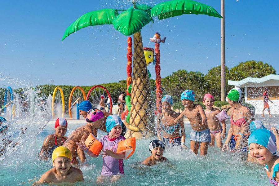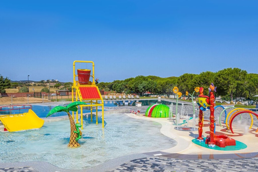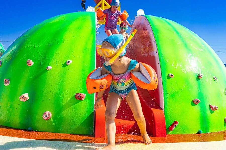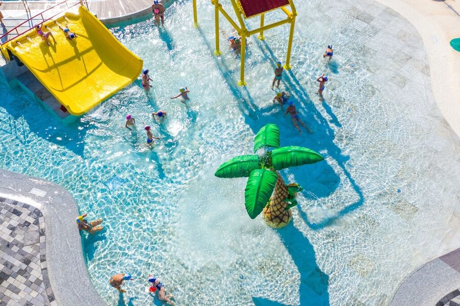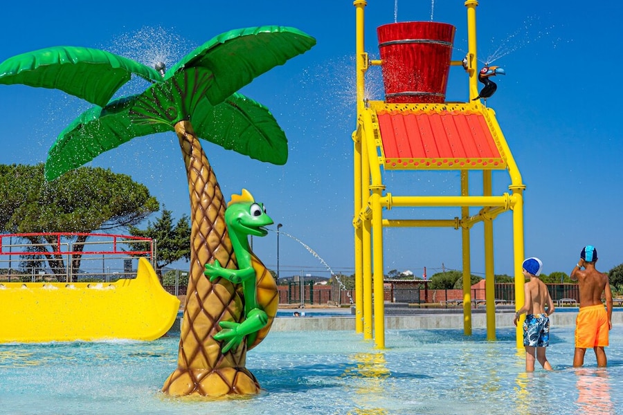 Your children will have seen the wonderful water park full of great play equipment as soon as you arrived, as this swimming pool complex is located right next to the entrance. Youngsters can have a great time in a real water playground. Its water jets, colourful play equipment and water pistols will provide plenty of ways to cool down. If you want to swim a few lengths or relax in the water, you can do so in one of the larger pools. Or maybe a walk to the beautiful beach? The Mediterranean is waiting for you.