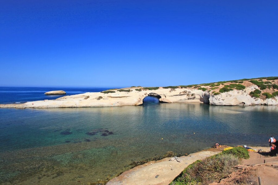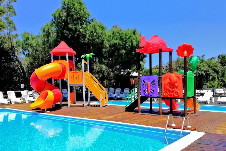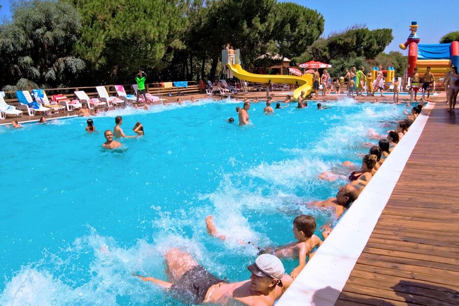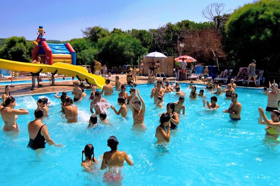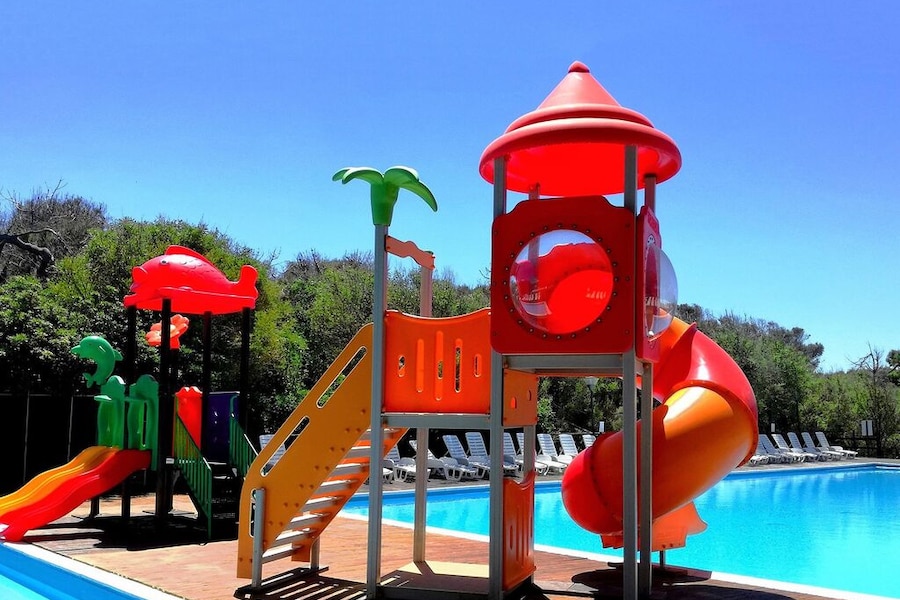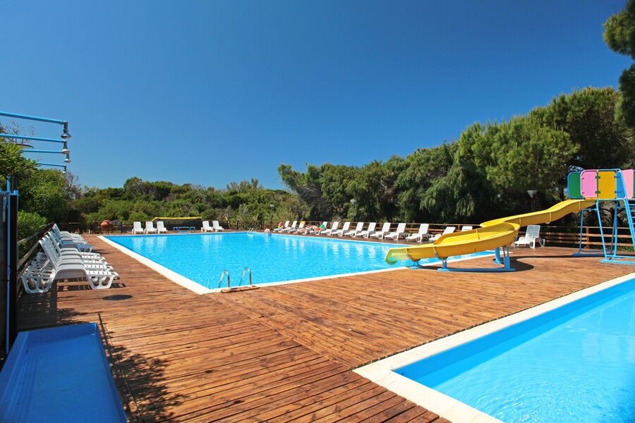 The campsite features a large outdoor swimming pool with a slide, as well as a separate paddling pool with two slides for the youngest guests. In just a few minutes, you’ll find yourself on the wide sandy beach of Is Arenas. The private Bella Beach is part of this 6 km-long stretch of coastline and can be reached from the campsite via a wooden boardwalk. On the beach, you can hire sun loungers with parasols, canoes and SUP boards, or simply lay down your towel and relax.