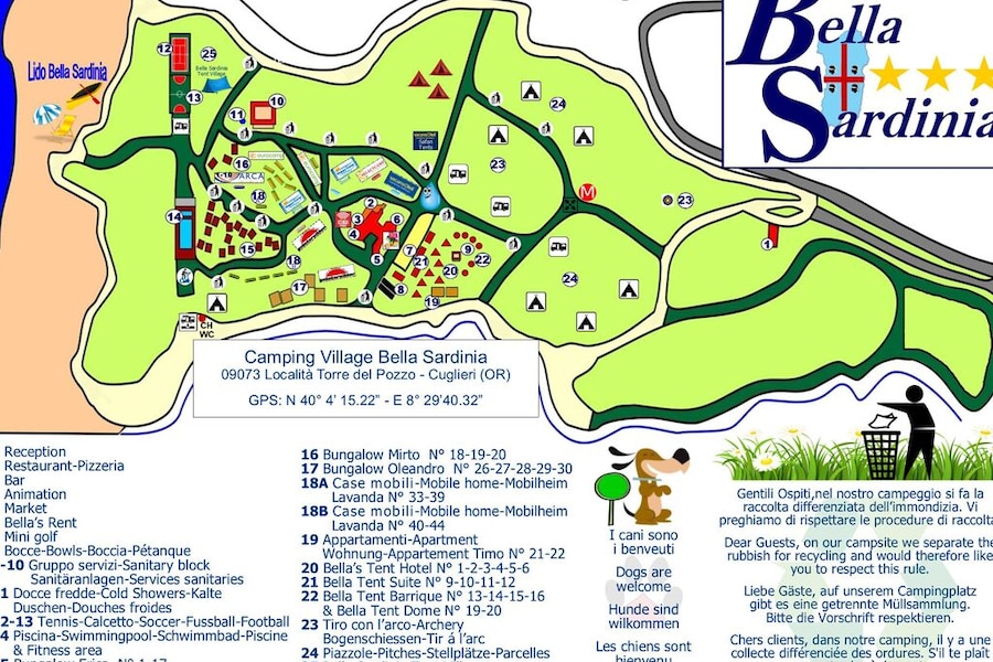 Camping Bella Sardinia offers all the facilities you need for a carefree holiday. You’ll find a restaurant, pizzeria and bar on site, as well as a supermarket for fresh bread and daily essentials. Keen to explore the surroundings by scooter, bicycle or mountain bike? You can easily hire one directly at the campsite. For ultimate relaxation, book a wellness treatment or enjoy a massage in the relaxation area.