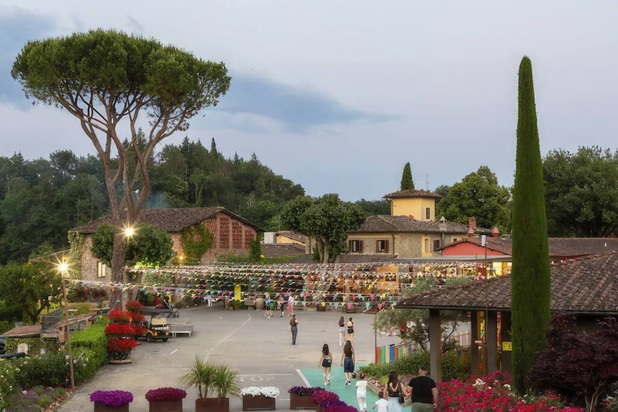 Camping Village Norcenni Girasole is located about thirty kilometres from Florence, in the middle of the Tuscan hills. There are beautiful vineyards all around. This is where the famous Chianti wine grows, which you can of course taste at the campsite. Norcenni Girasole Club is a terraced campsite, which means that the pitches are at different levels. This provides a very pleasant and cosy feeling, despite the fact that the campsite is really quite big; no less than eleven hectares in size.