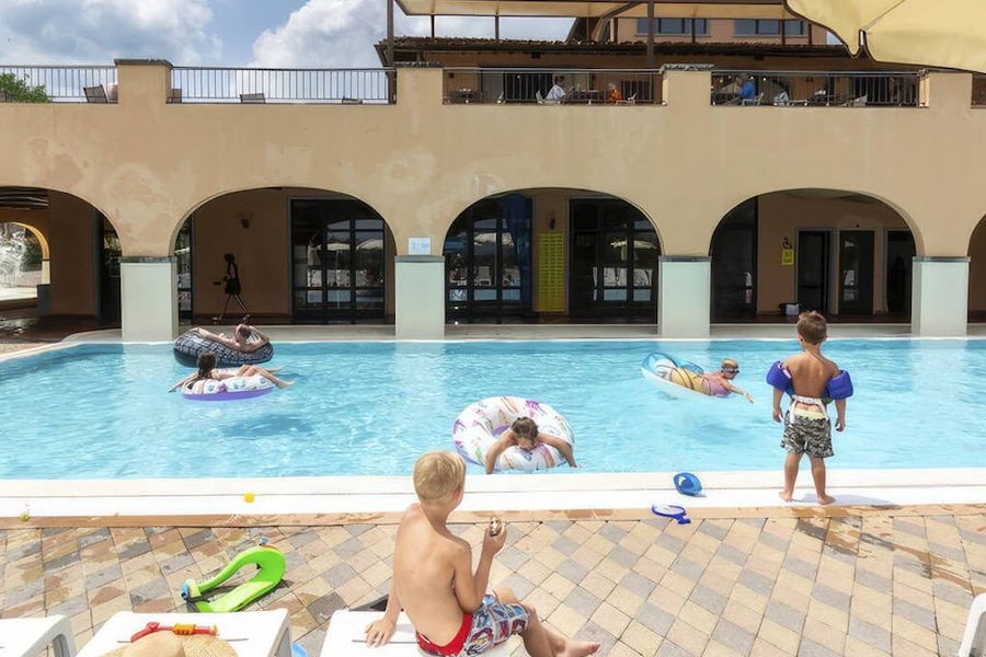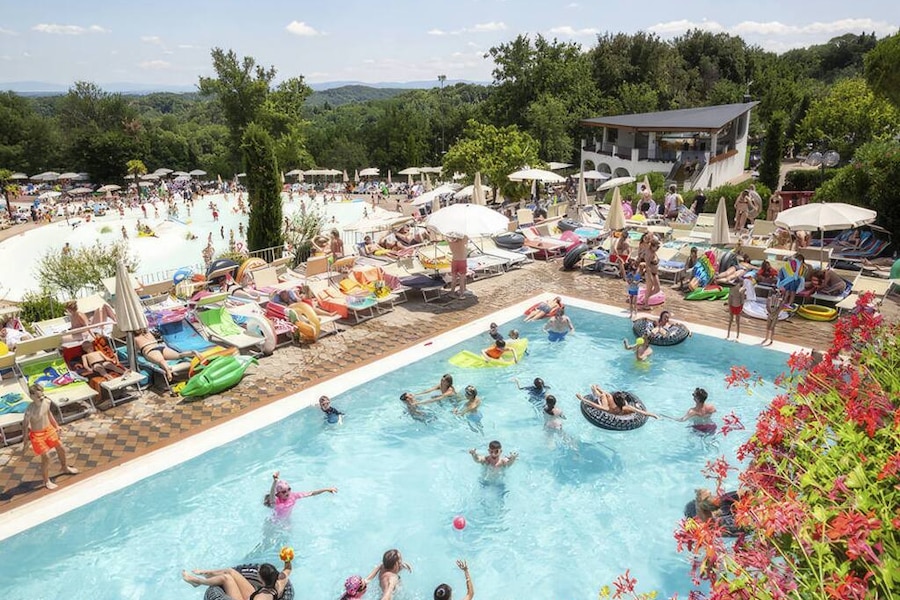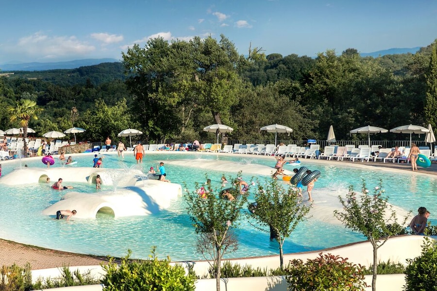 With two large water parks, this campsite in Tuscany is a paradise for all water sports enthusiasts, young and old. And if you're a fan of Tuscan cuisine or Chianti wines, the Norcenni Girasole Club campsite is also the place to be. You can stay comfortably in a luxury SunLodge mobile home or lodge tent. But this holiday village has a lot more to offer. How about an Italian ice-cream parlour, a large games room and a wellness centre with a Turkish bath? There is even a riding school! Get ready for a luxury camping holiday in sunny Tuscany.