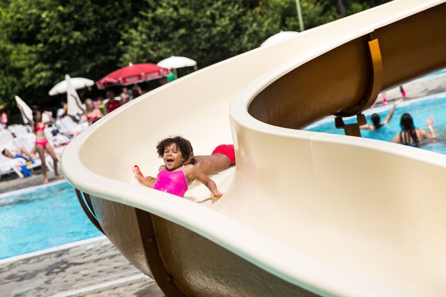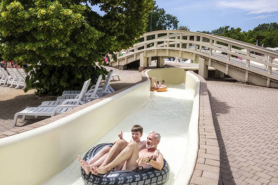 You will find two large water parks on this family campsite. The water park on the upper part is especially fun for young children. They can splash around in three swimming pools with all kinds of play equipment. It is fun and safe, because the pools are shallow and have a soft bottom. You can use an inflatable ring to go down the slide or drift down the lazy river. So much fun! The second water park is located on the other side of the village. It boasts a competition pool, a children's pool and a large water slide. The heated pool has a sliding roof, ideal for when the weather is not at its sunniest.