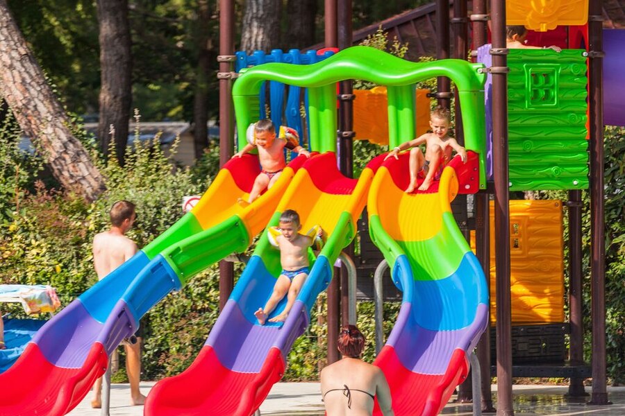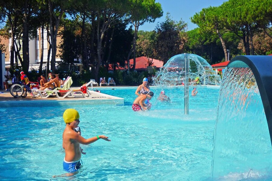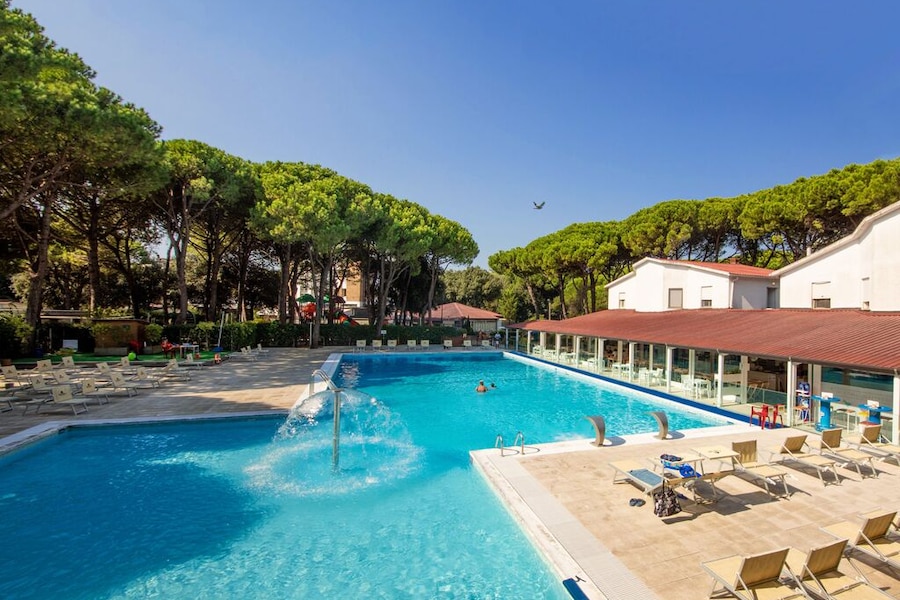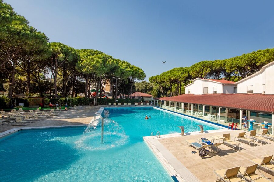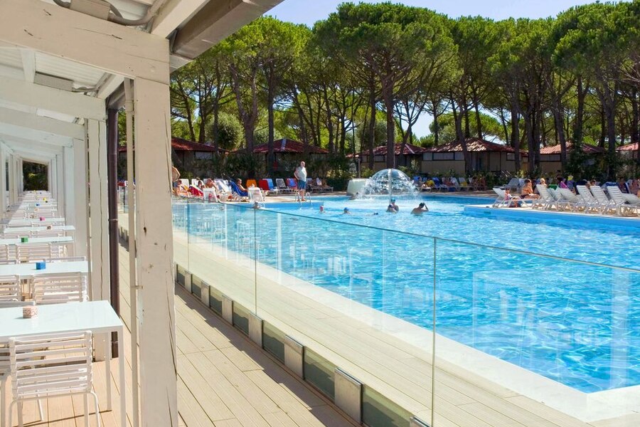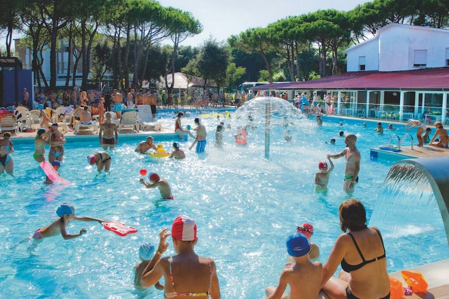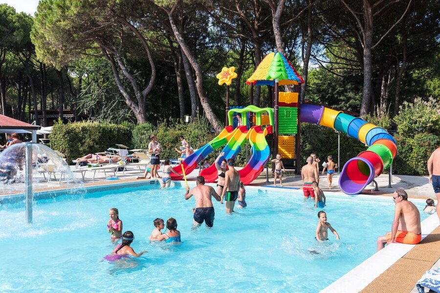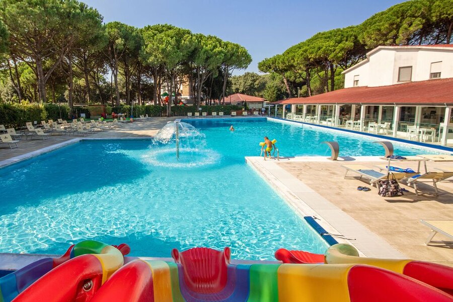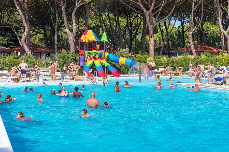Spend your holiday right by an Italian beach at this campsite near Venice. With its lovely swimming pool you will have twice as much fun swimming . Take a dip in the pool at Jesolo Mare Family Camping Village, or jump into the Mediterranean Sea. While your children take part in a sports competition, you can relax in the wellness centre. You can all enjoy a pizza in the restaurant, after which you can jump back into the water. For a day out, go to the Caribe Bay water park. And of course, you must not miss out Venice.