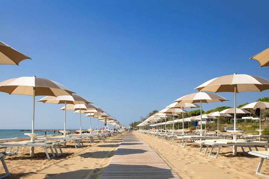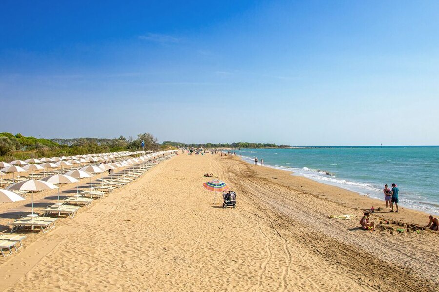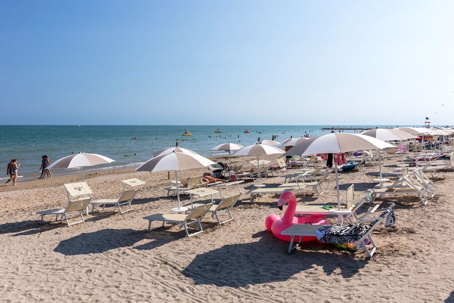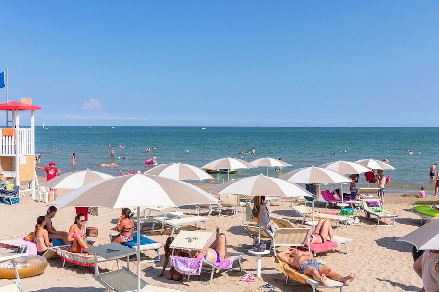 A private beach on the Mediterranean; how much luxury do you want? You can be standing on the beach in just a few steps from this Italian campsite. The campsite is located in Lido di Jesolo, Jesolo’s coastal part. This small town is one of the loveliest resorts on the Adriatic coast. Lido di Jesolo’s beach is 15 kilometres long, and as a guest of Jesolo Mare Family Camping Village, you will have a lovely section of this beach all for yourself. For extra comfort, parasols and sunbeds can be rented.